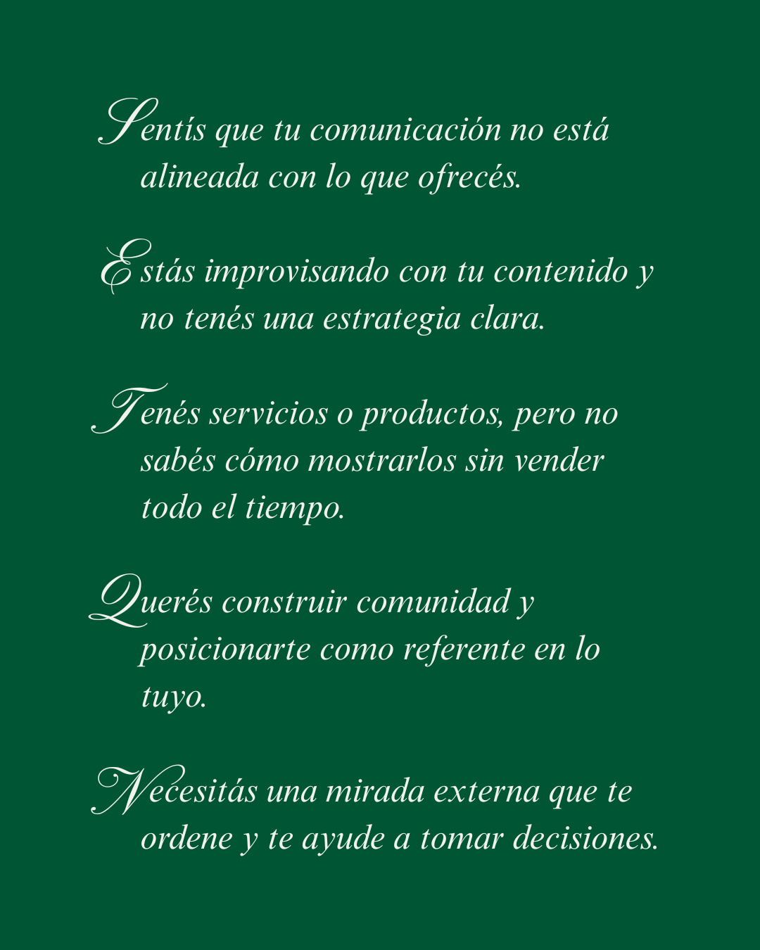 Un encuentro uno a uno donde vamos directo a lo que necesitás: revisar tu comunicación, ordenar tu contenido, ajustar tu posicionamiento o armar una estrategia clara. Nada de vueltas, vamos a lo importante.